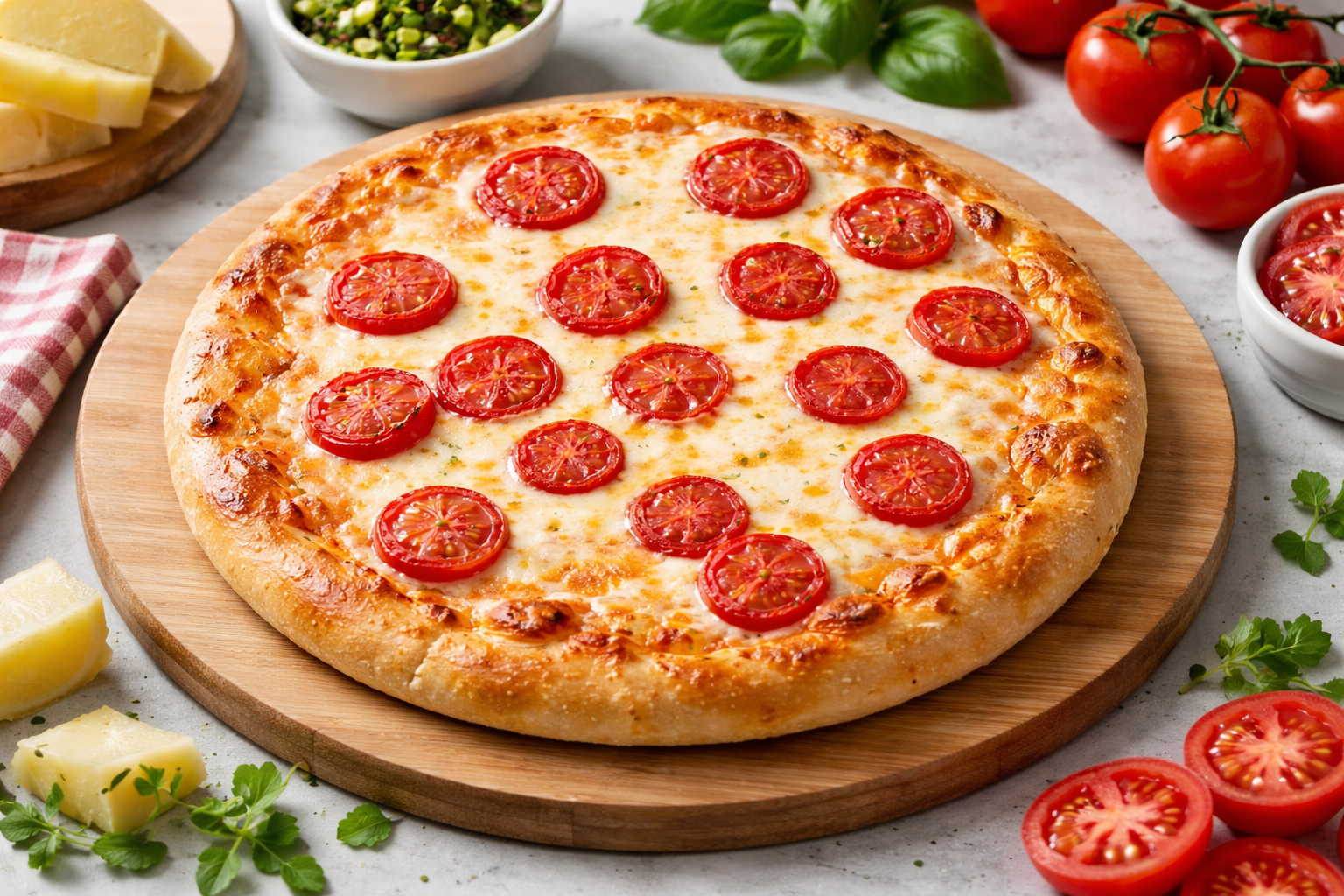 Cà chua, sốt cà chua, nhiều pho mai Mozzarella